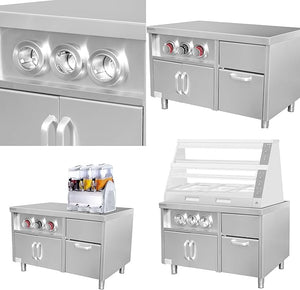 - Ample Storage Capacity: The spacious interior of the cabinet provides ample storage for your beverage dispenser and other related supplies. The lower shelves are ideal for storing items of various sizes in an organized manner. This makes your beverage dispenser more organized and functional, increasing service speed.