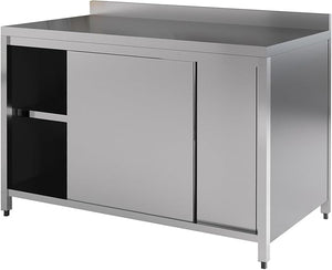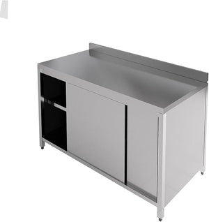 - INTEGRATED BACKSPLASH: Designed with an integrated backsplash as a functional and aesthetic feature, this worktable provides added protection against splashes, spills, and stains, safeguarding surrounding walls and surfaces, and facilitating hassle-free cleaning and maintenance, promoting a hygienic and sanitary kitchen environment.