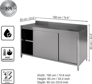 - HEAVY-DUTY STAINLESS STEEL CONSTRUCTION: Expertly crafted from premium-grade 304 stainless steel, renowned for its exceptional durability, corrosion resistance, and long-lasting performance, ensuring the worktable withstands the rigors of high-volume commercial kitchens.