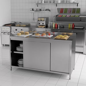 - SMOOTH SLIDING DOORS: Featuring smoothly gliding sliding doors, engineered for effortless operation and durability, allowing seamless access to the spacious storage compartments within, ensuring ingredients, utensils, and equipment are easily reachable while maintaining a clutter-free and organized kitchen environment.