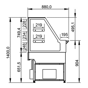 Cooled Showcase Toronto- 1600mm - Wooden Front Panel - 2 Shelves - Black Granite Working Call